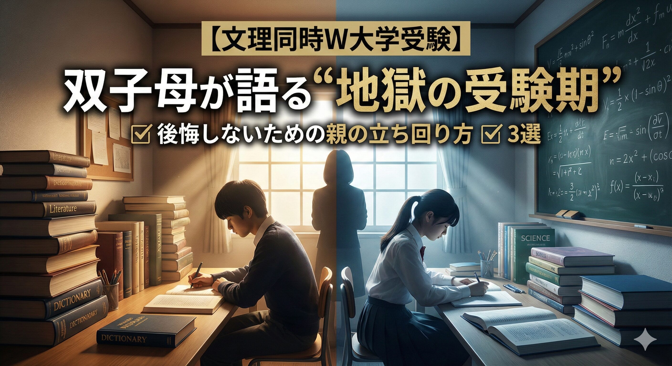 私自身、双子を文系と理系に分かれての受験期は、心身ともに限界を感じるほど過酷でした。
