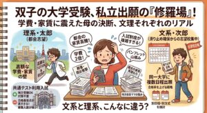 双子の大学受験は、受験日程や合格発表が同時に進むため、精神的にも経済的にも負担が大きいと感じました。