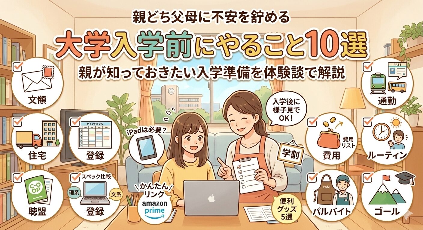 この記事では、大学入学前に優先してやっておきたい10のことと、多くの親御さんが迷う**「iPad問題」**について、実体験に基づいたリアルな視点で解説します。
