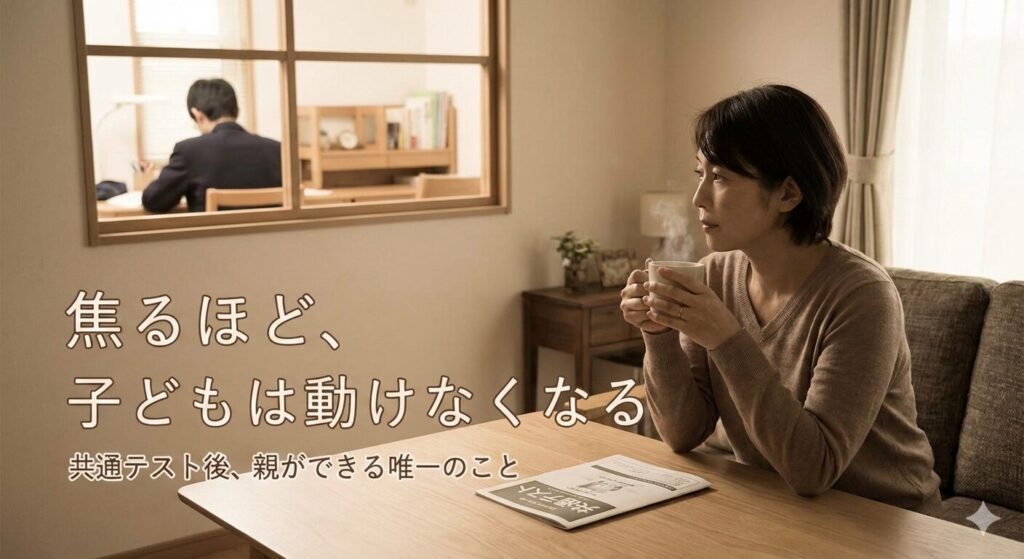 ― 焦るほど、子どもは動けなくなる ― 共通テストが終わりました。この数日、受験生本人以上に、心が落ち着かないのは「保護者」かもしれませんね。かつての私もそうでした。 ・点数はどうだったんだろう・このまま志望校で大丈夫?・出願、間に合う?・浪...