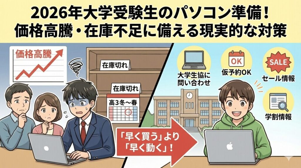 2026年版|大学受験生のパソコン準備は「合格後」じゃ遅い?価格高騰と在庫不足から受験生を守る戦略