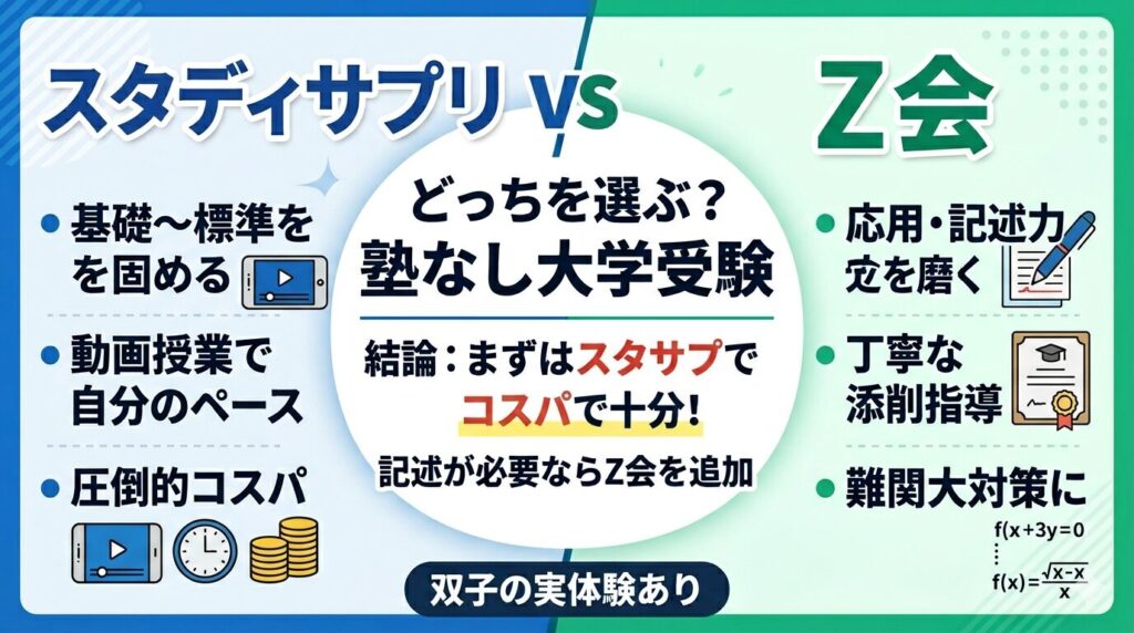 スタディサプリとZ会どっち?塾なし受験で我が家が選んだ理由【実体験あり】